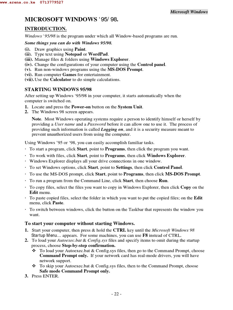 Windows ‘95/98 is the program under which all Window-based programs are run.