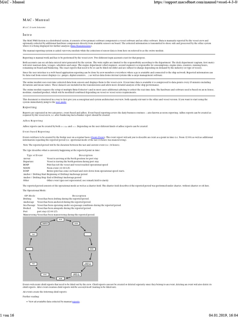 Reporting is manual work and has to be performed by the vessel crew. Two different login accounts exist for that purpose.