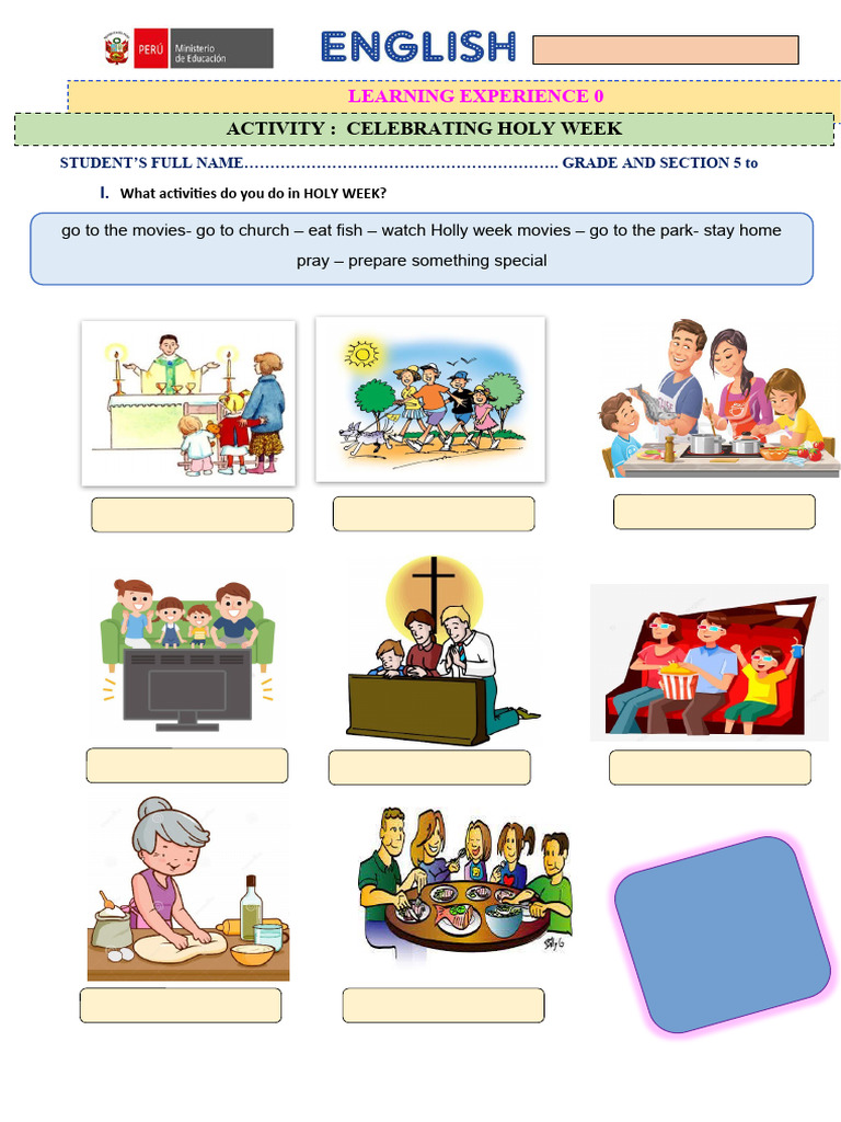 I. What activities do you do in HOLY WEEK?