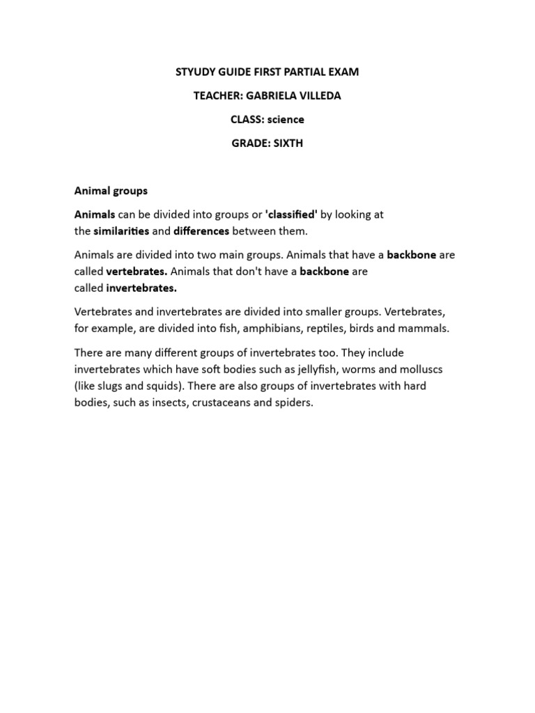 Vertebrates and invertebrates are divided into smaller groups. Vertebrates,