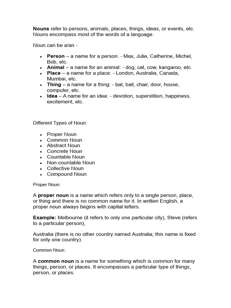 Nouns refer to persons, animals, places, things, ideas, or events, etc.