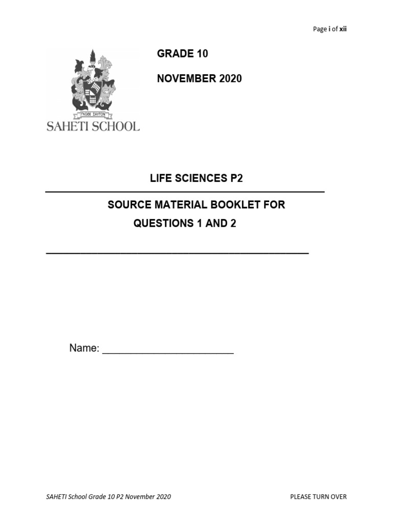 SAHETI School Grade 10 P2 November 2020 PLEASE TURN OVER