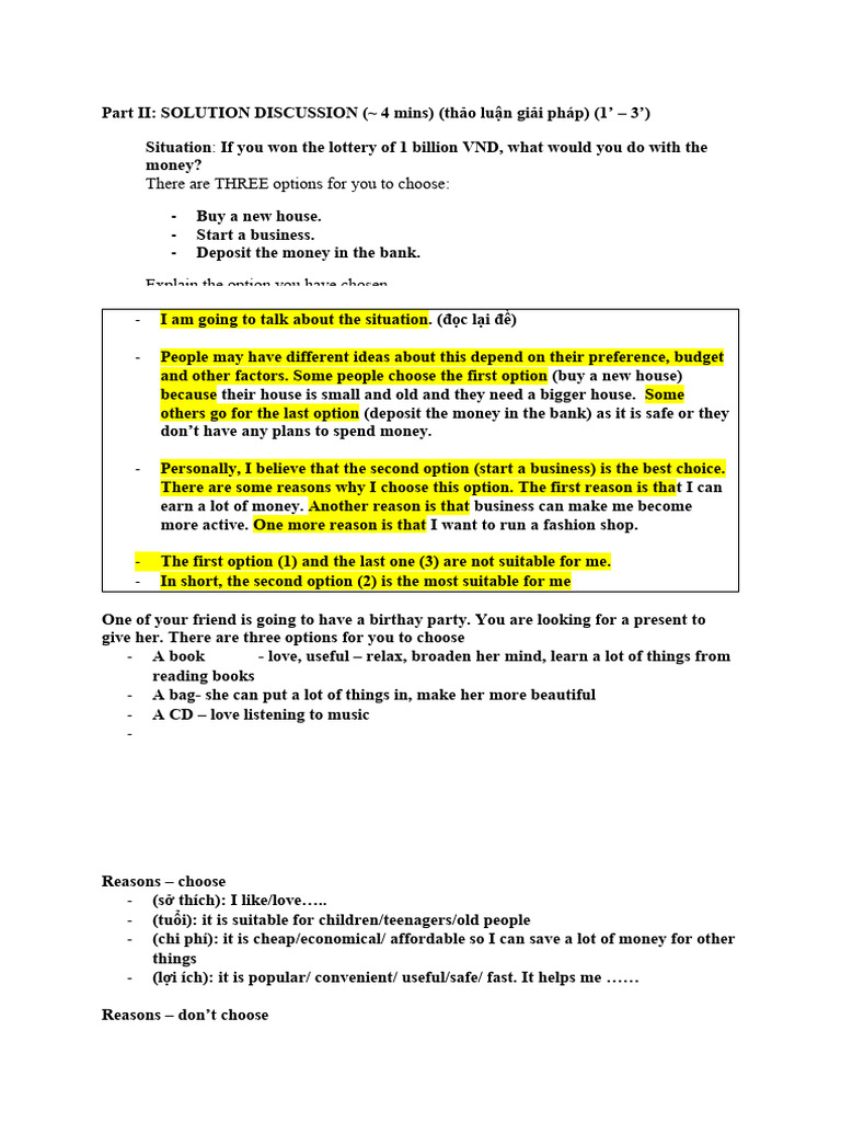 Part II: SOLUTION DISCUSSION (~ 4 mins) (thảo luận giải pháp) (1’ – 3’)