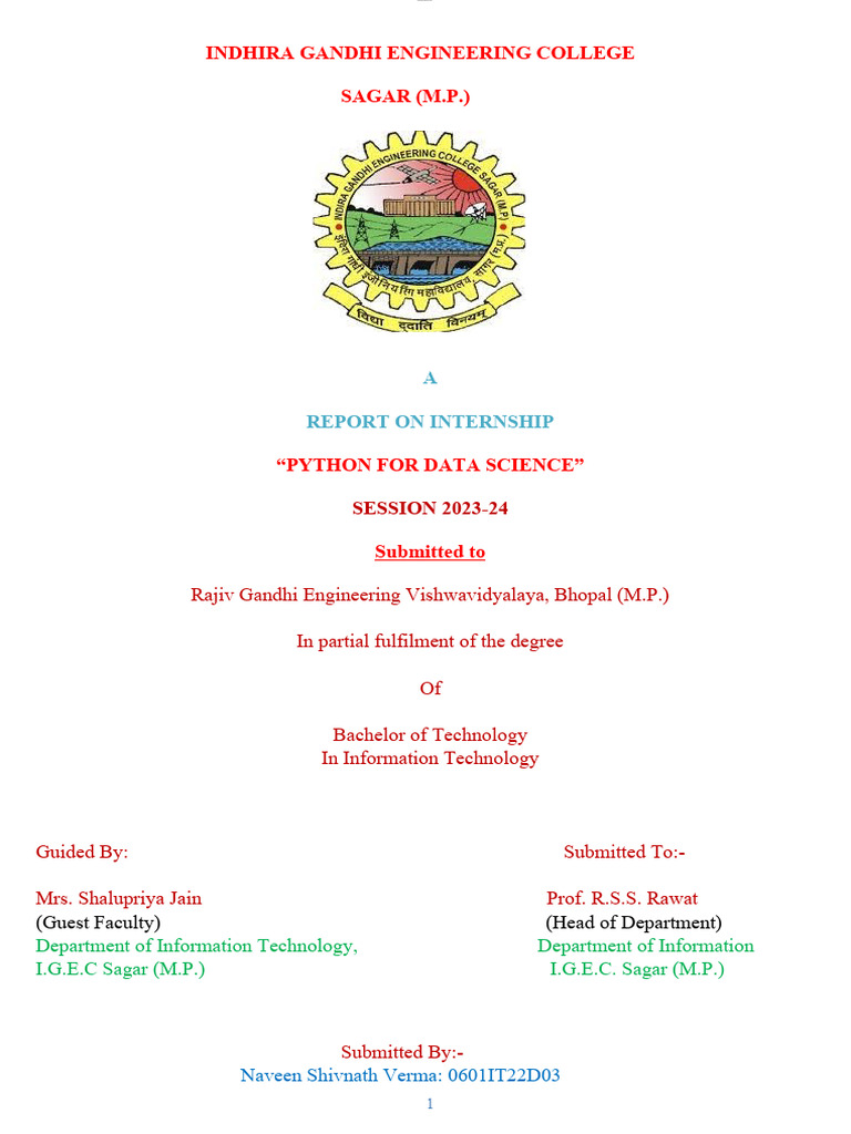 College, Sagar (M.P.) affiliated to Rajiv Gandhi Proudyogiki Vishwavidhyalaya,