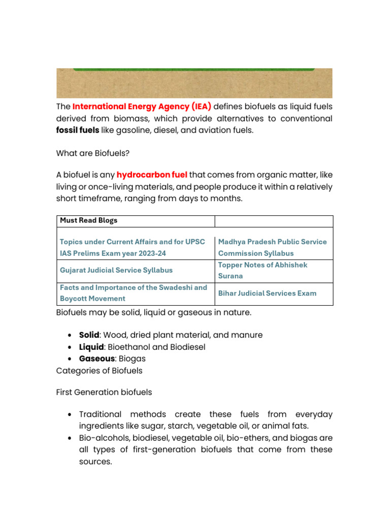 Categories of Biofuels