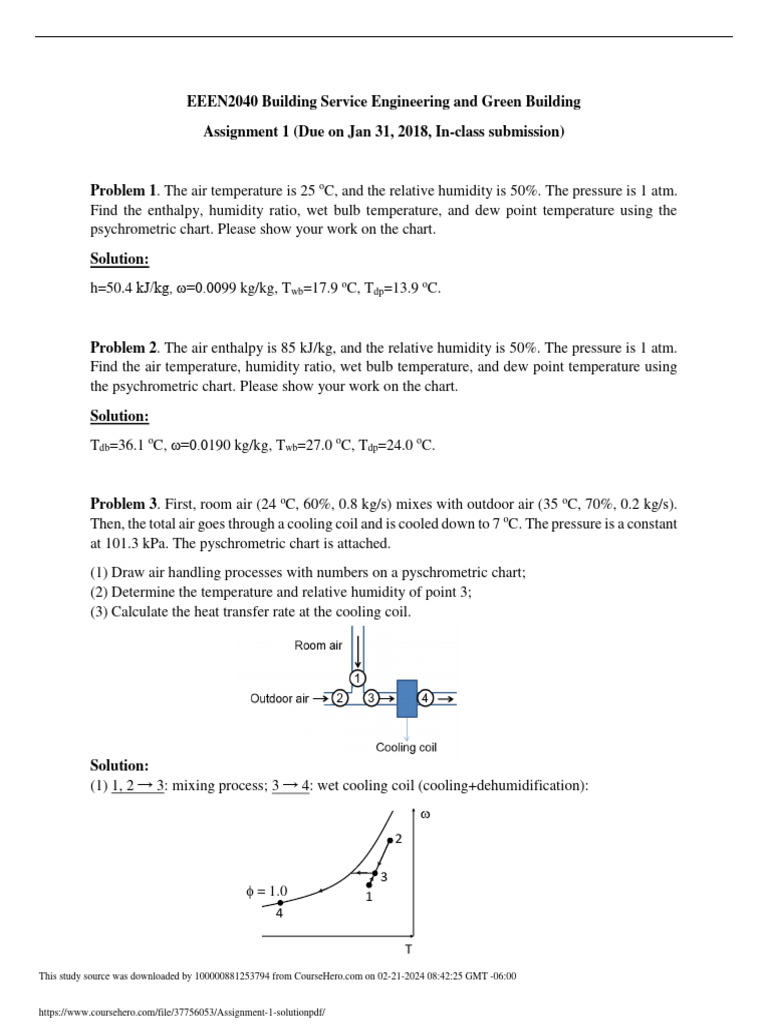 Problem 1. The air temperature is 25 oC, and the relative humidity is 50%. The pressure is 1 atm.