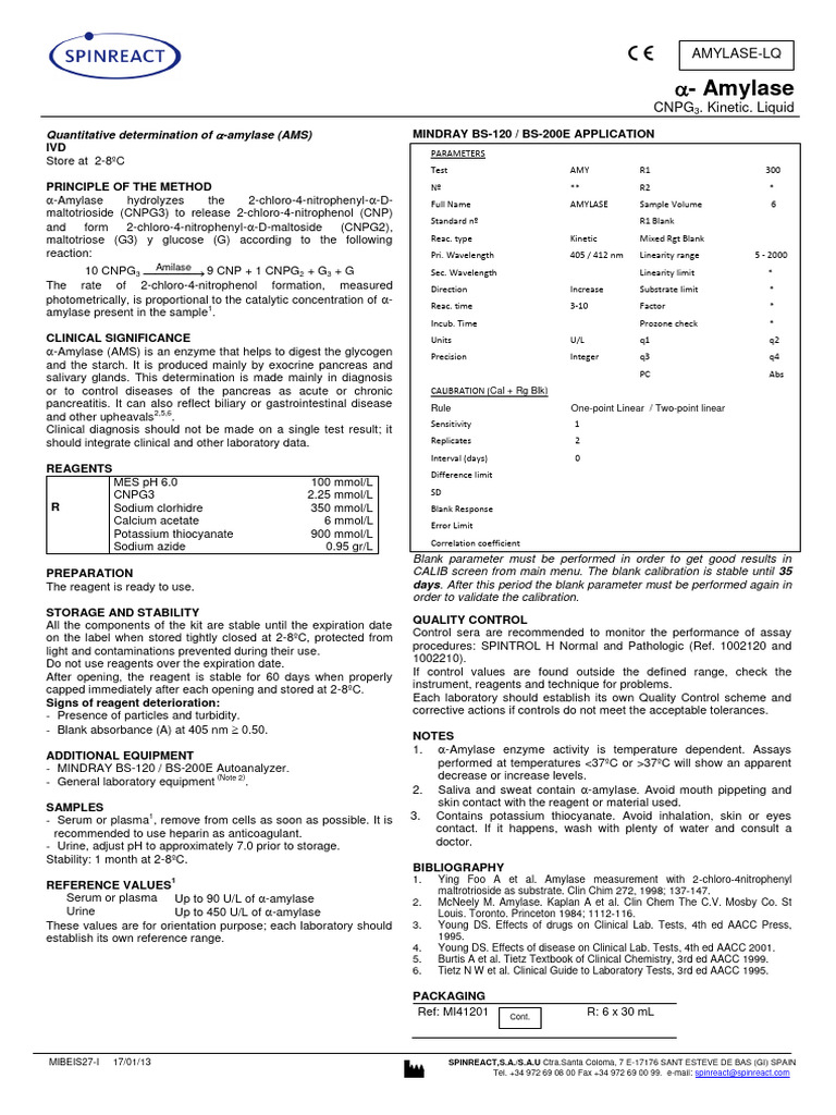 MIBEIS27-E 17/01/13 SPINREACT,S.A./S.A.U Ctra.Santa Coloma, 7 E-17176 SANT ESTEVE DE BAS (GI) SPAIN