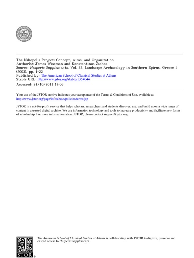 Supplements, Vol. 32, Landscape Archaeology in Southern Epirus, Greece 1 (2003), pp. 1-22 Published by: The American School of Classical Studies at Athens Stable URL: [Link] . Accessed: 24/10/2011 14:06