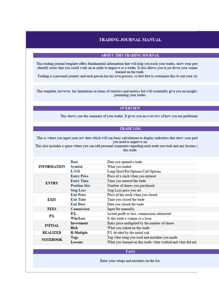 TRADING JOURNAL MANUAL