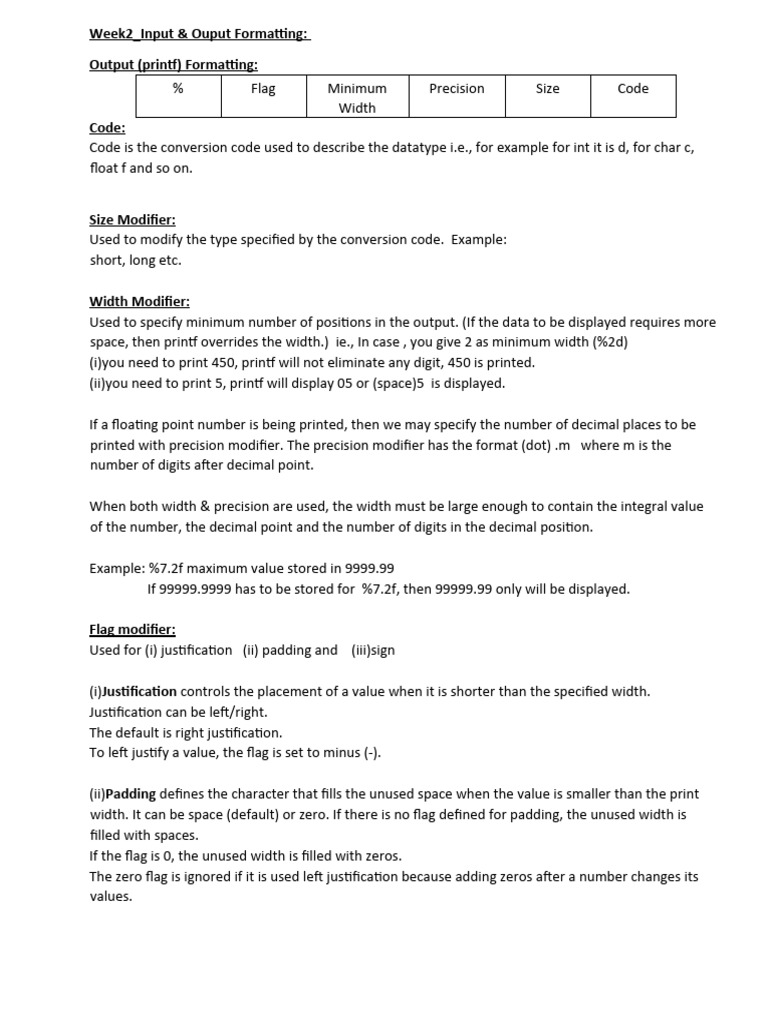 space, then printf overrides the width.) ie., In case , you give 2 as minimum width (%2d)