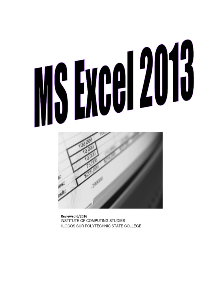 An Introduction to MS Excel 2013 (similar to MS Excel 2010)