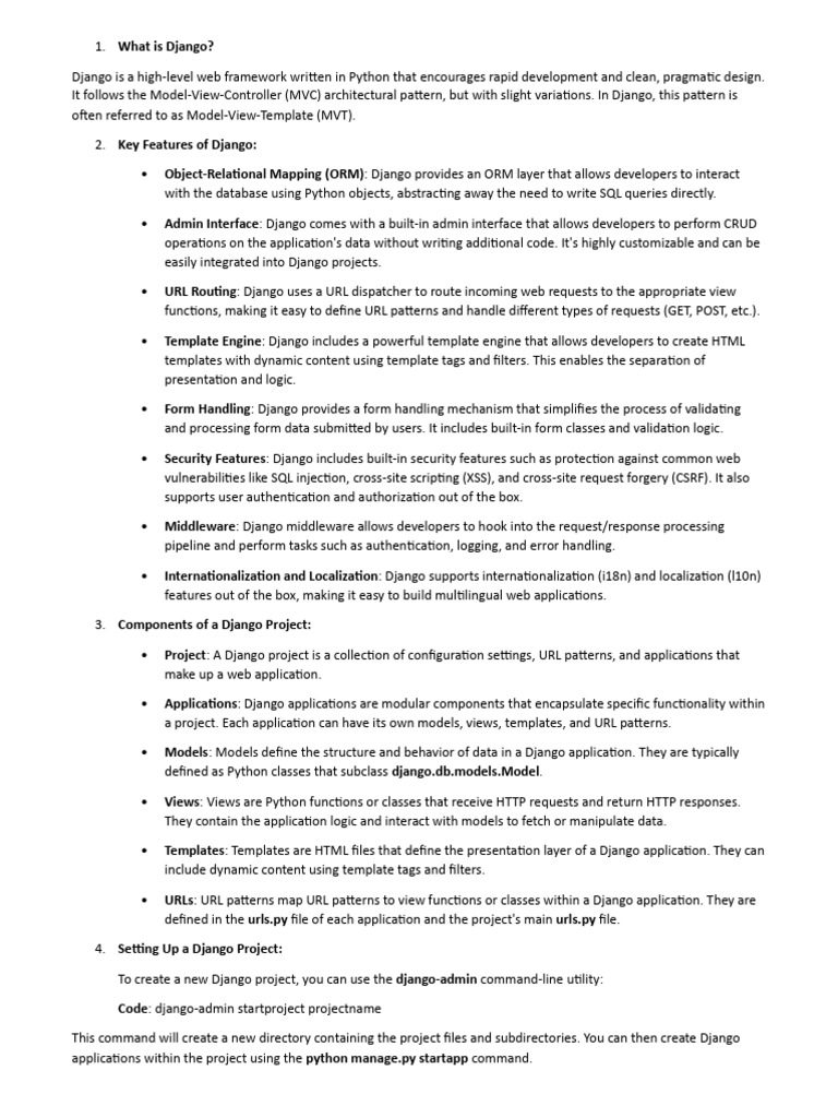 Django is a high-level web framework wri en in Python that encourages rapid development and clean, pragma c design.