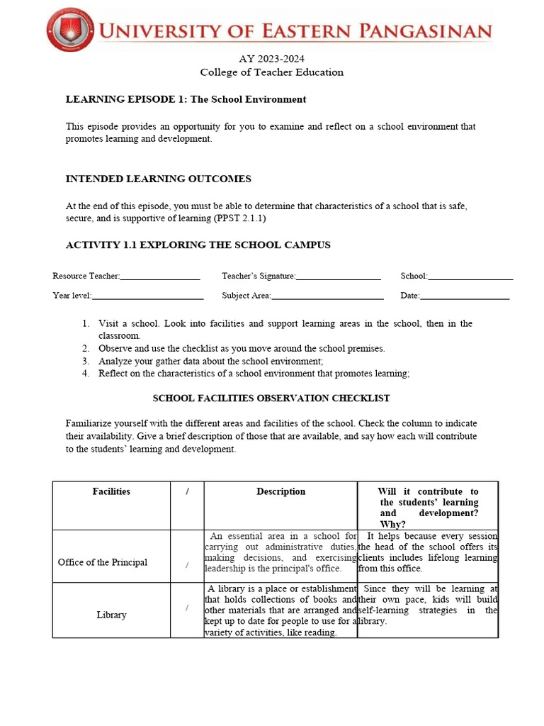LEARNING EPISODE 1: The School Environment