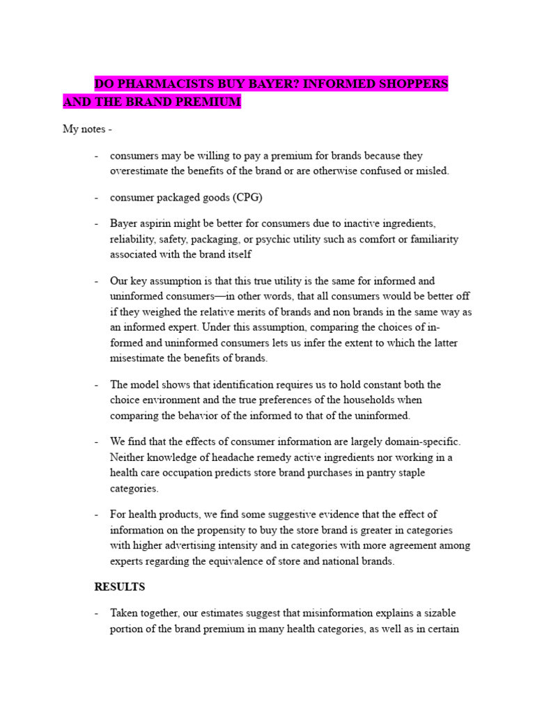 store brands and fewer national brands. It quantifies the impact of consumer information on