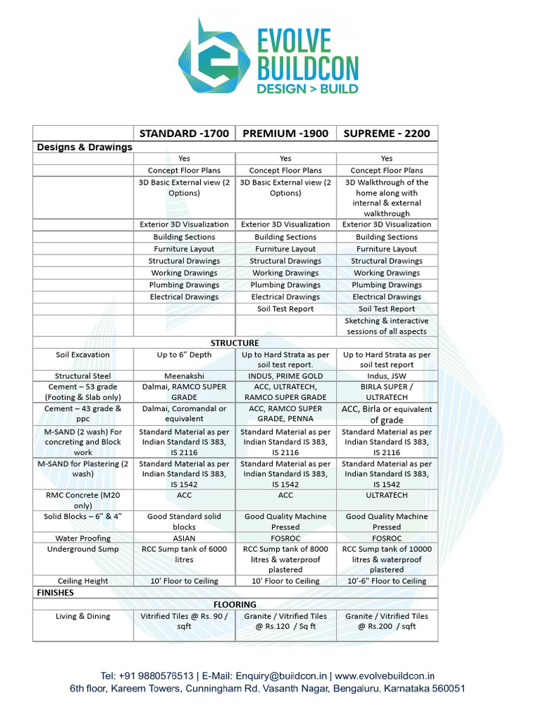 STANDARD -1700 PREMIUM -1900 SUPREME - 2200
