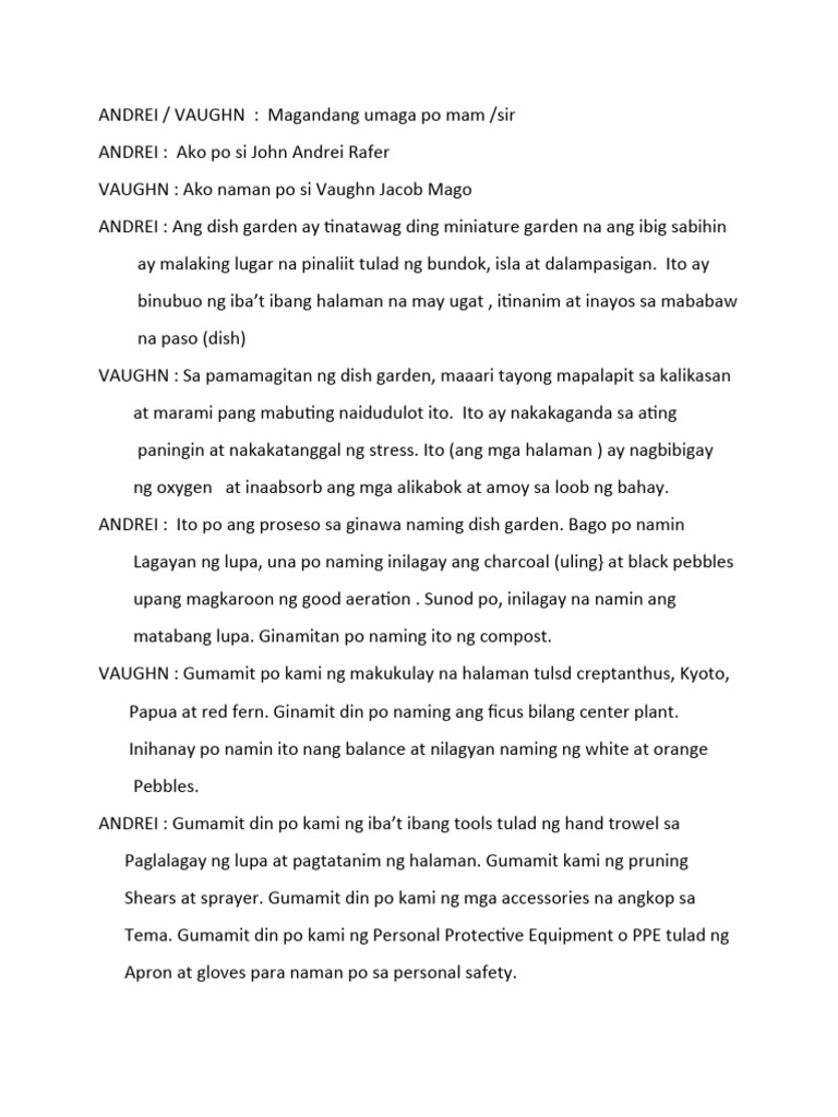 ANDREI : Ito po ang proseso sa ginawa naming dish garden. Bago po namin
