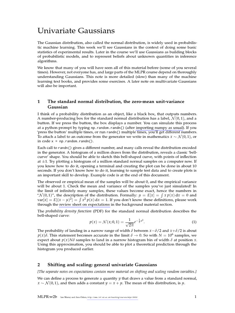 learning text books, and provides some exercises. A later note on multivariate Gaussians