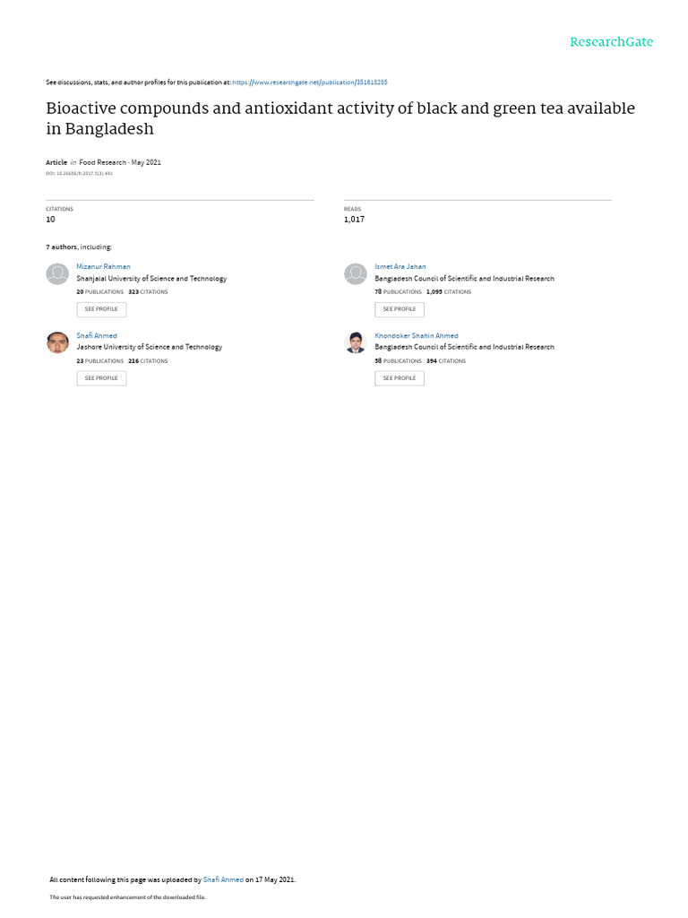 Bangladesh. Food Research, 4(5), 1693-1699. Hodgson, J.M. and Croft, K.D. (2010). Tea flavonoids