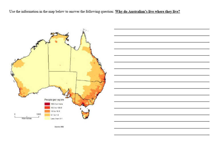 The document discusses why Australians live where they live using information from a map, with climate and geography playing important roles in settlement patterns.