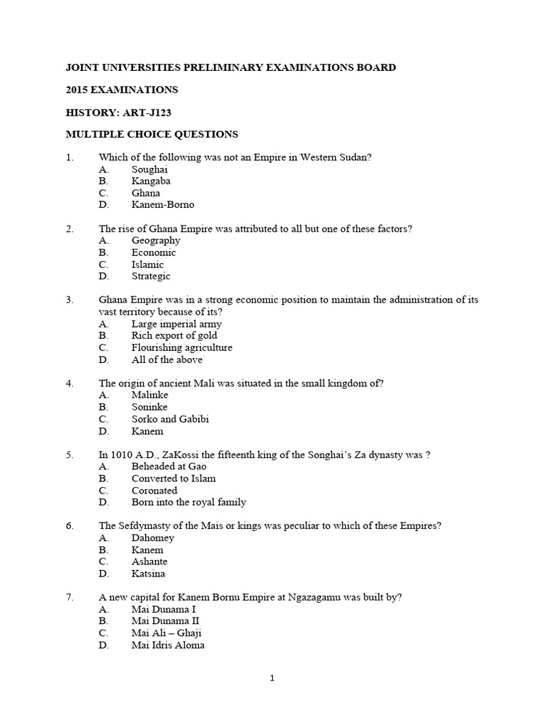 JOINT UNIVERSITIES PRELIMINARY EXAMINATIONS BOARD