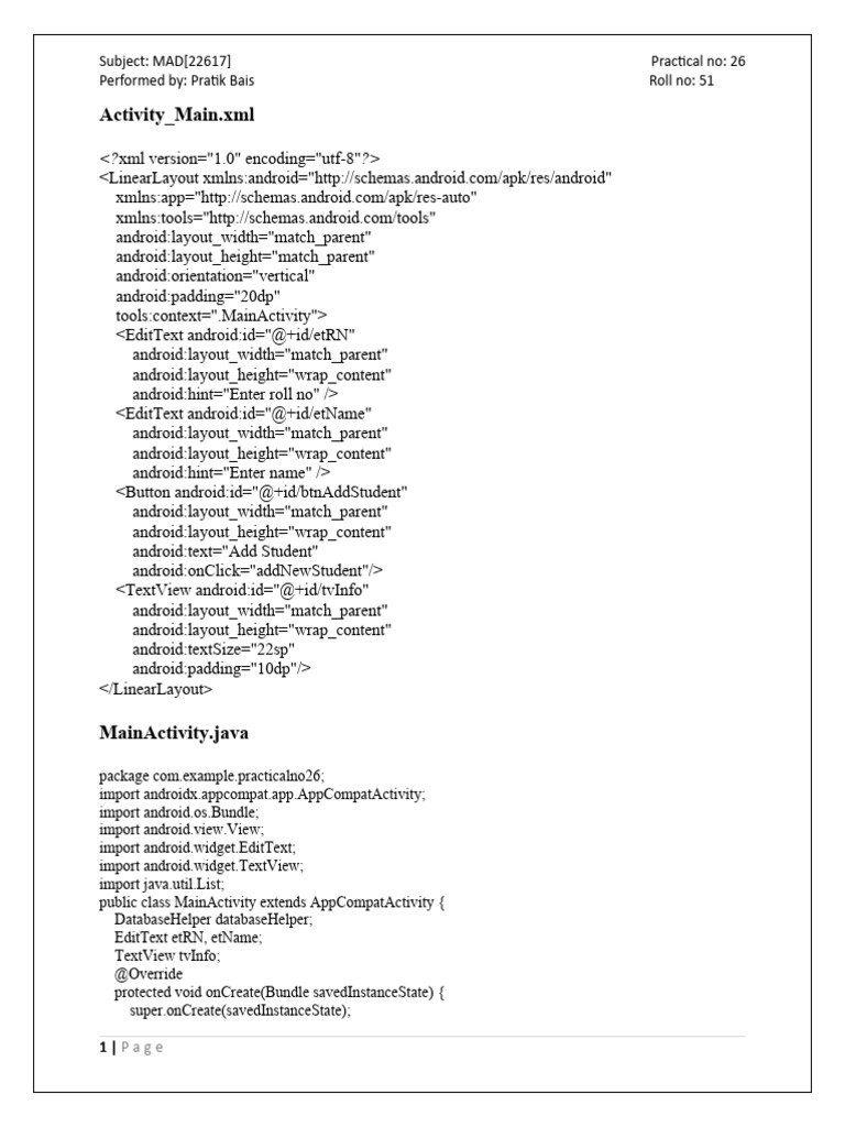 Subject: MAD[22617] Practical no: 26