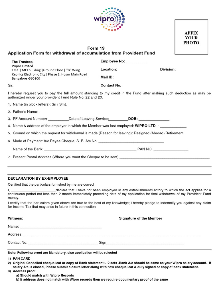 4. Name & address of the employer in which the Member was last employed: WIPRO LTD - _____________