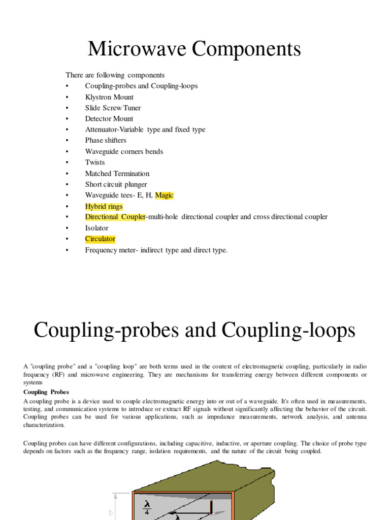 different components or systems. Coupling probes are often used to couple electromagnetic energy into or out of circuits, while