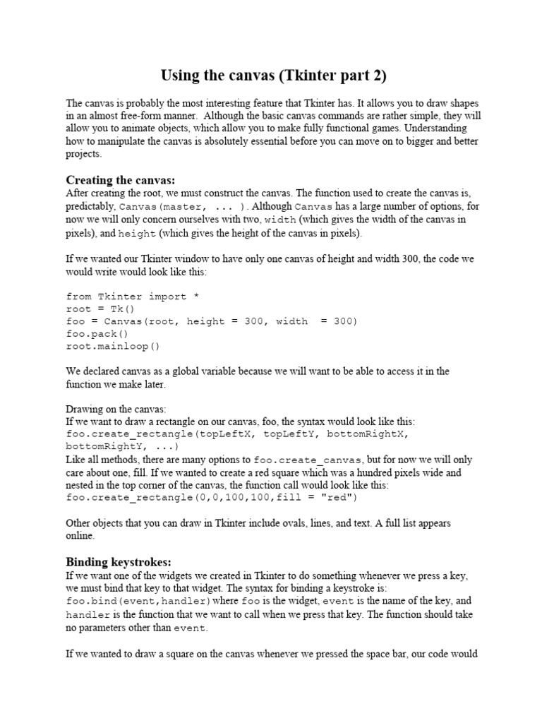 The canvas is probably the most interesting feature that Tkinter has. It allows you to draw shapes