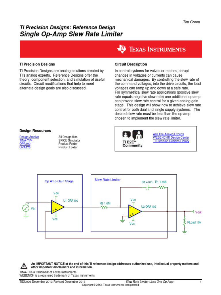 2 Slew Rate Limiter Uses One Op Amp TIDU026-December 2013-Revised December 2013