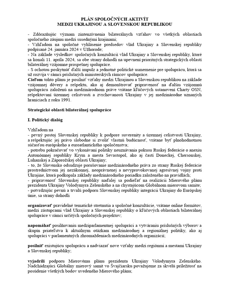Cieľom tohto plánu je posilniť vzťahy medzi Ukrajinou a Slovenskou republikou na základe