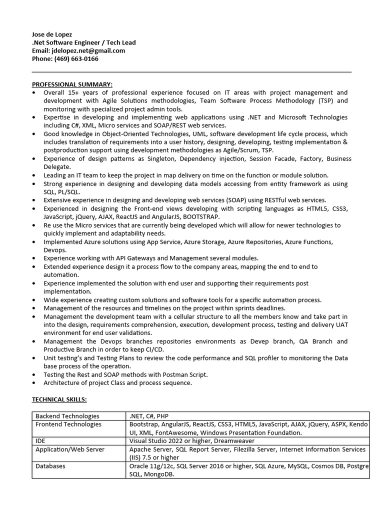 including C#, XML, Micro services and SOAP/REST web services.