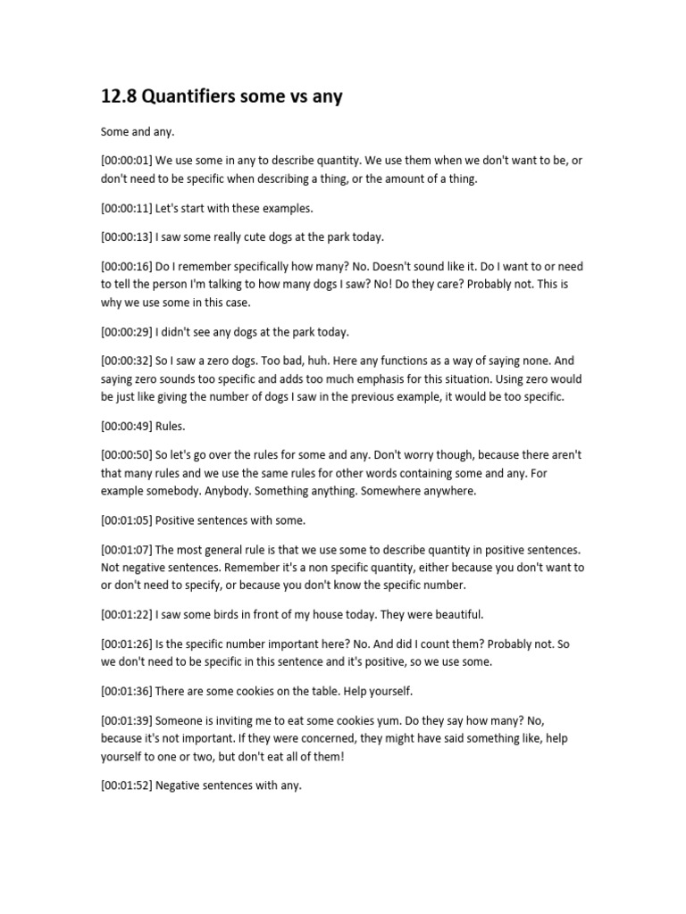 8 Quantifiers some vs any