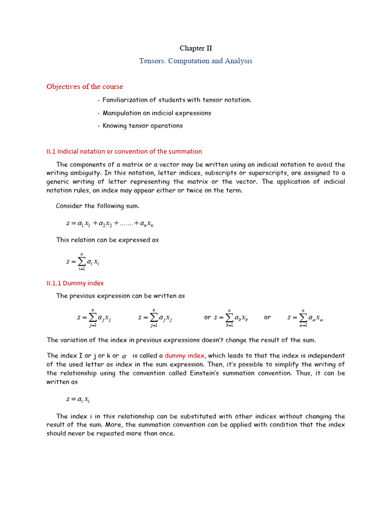 - Familiarization of students with tensor notation.