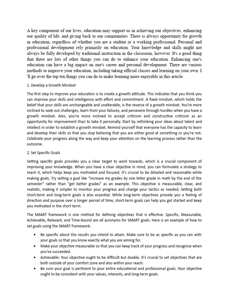 The first step to improve your education is to create a growth attitude. This indicates that you think you