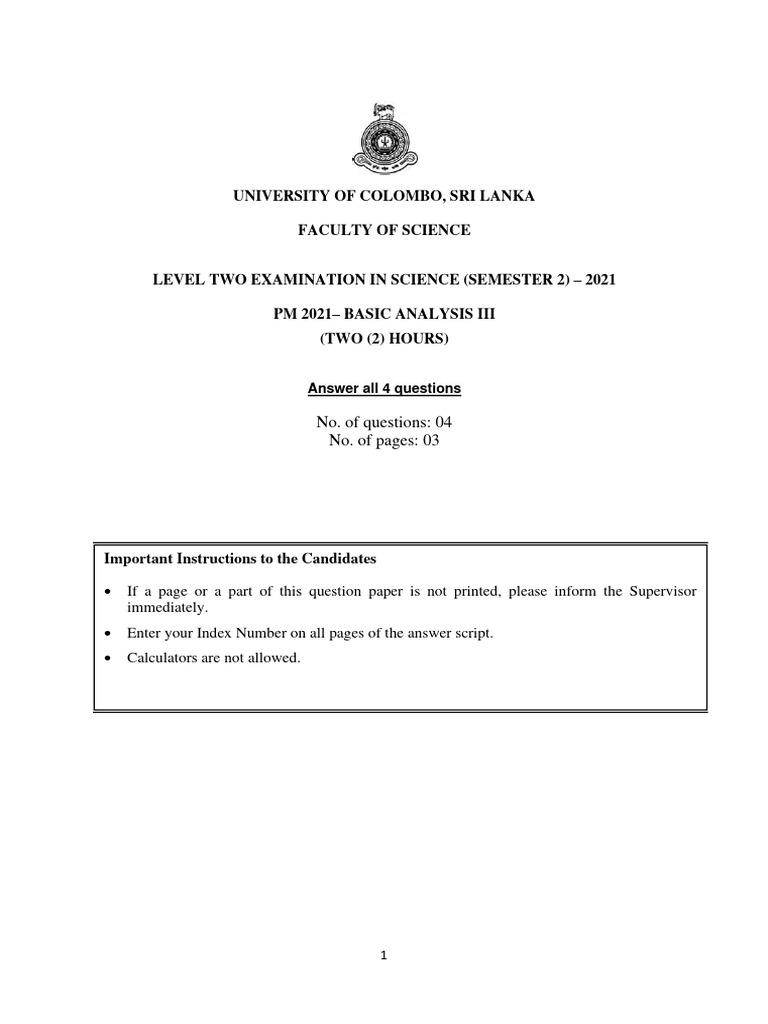 LEVEL TWO EXAMINATION IN SCIENCE (SEMESTER 2) – 2021