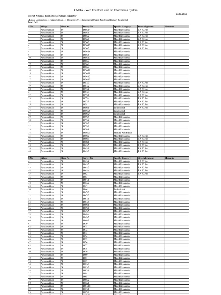 Chennai Corporation -->Purasawakkam--> Block No: 29 -->Institutional,Mixed Residential,Primary Residential