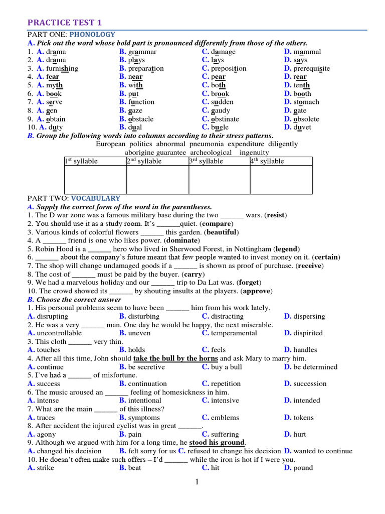 A. Pick out the word whose bold part is pronounced differently from those of the others.