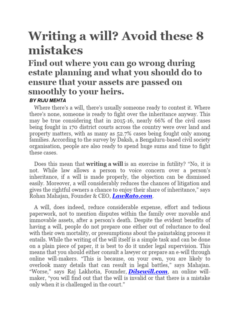 “Worse,” says Raj Lakhotia, Founder, Dilsewill.com, an online will-