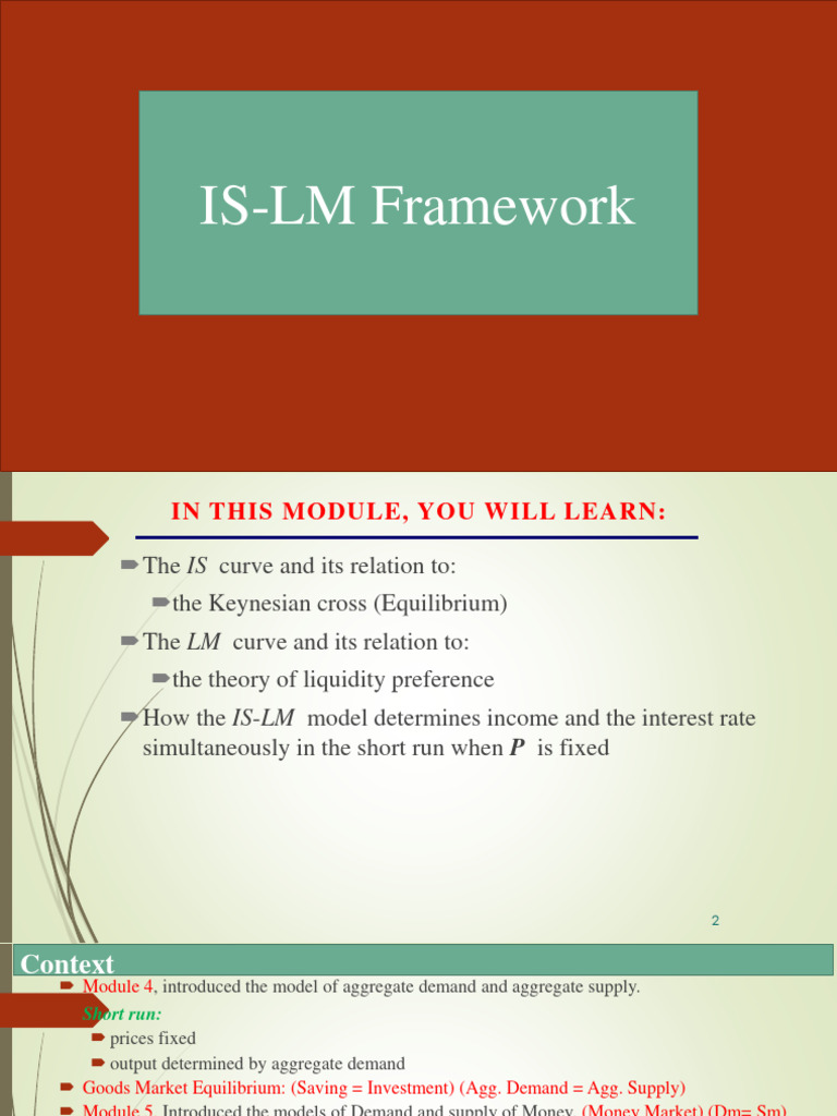 Module 5, Introduced the models of Demand and supply of Money. (Money Market) (Dm= Sm)