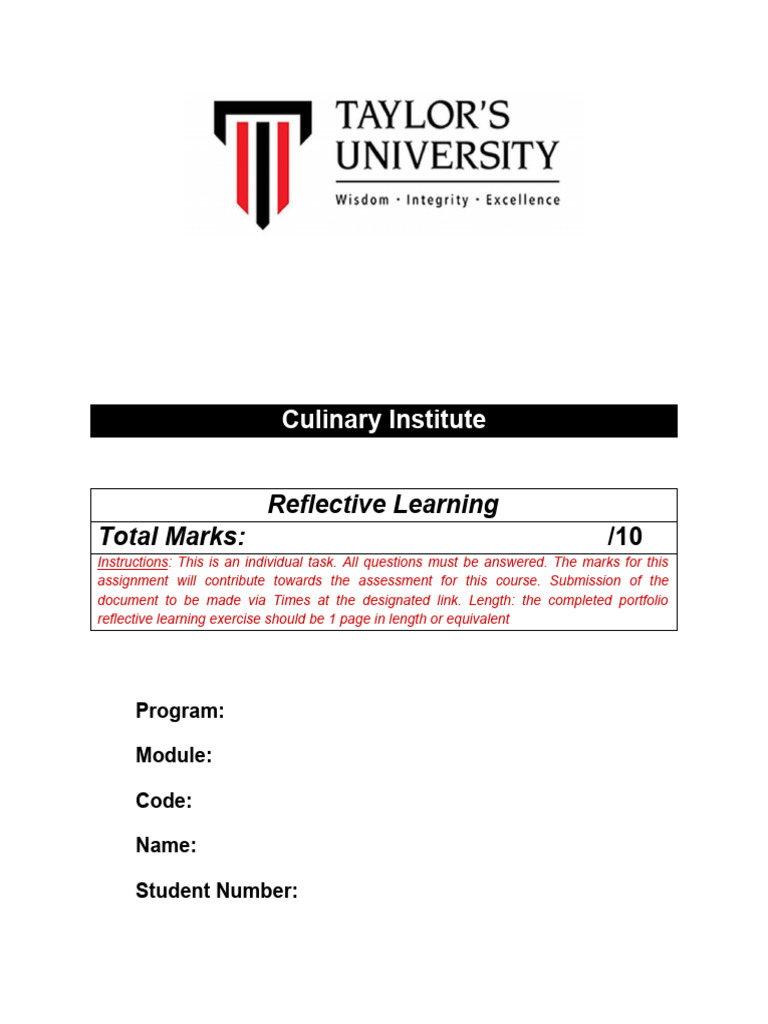 Develop your reflective learning by using TAYLOR’S GRADUATE CAPABILITIES (TGC) skills.