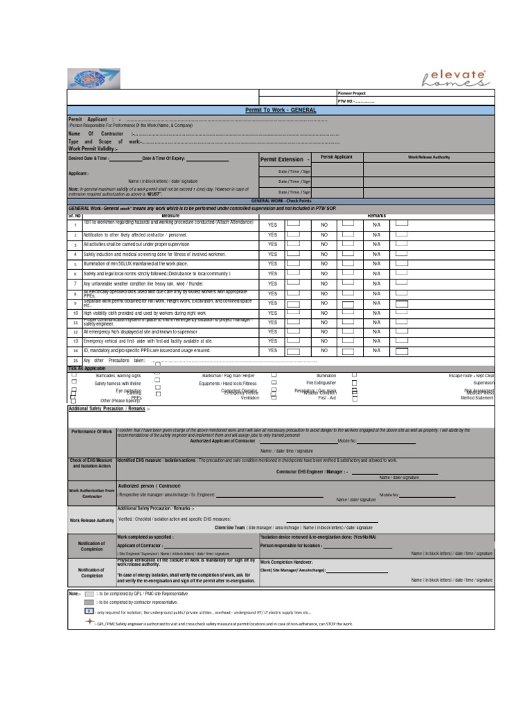 Permit To Work - GENERAL
