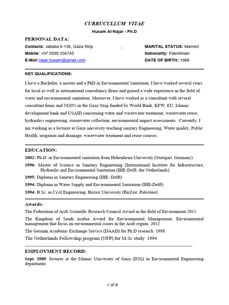 am working as a lecturer at Gaza university teaching sanitary Engineering, Water quality, Public