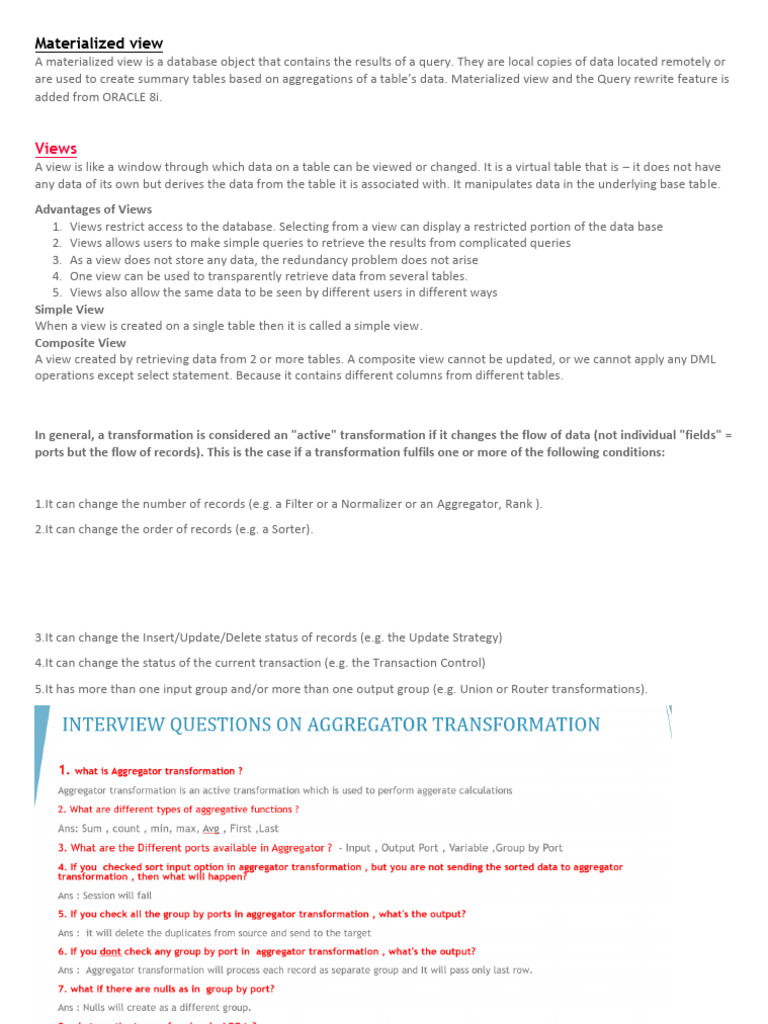 are used to create summary tables based on aggregations of a table’s data. Materialized view and the Query rewrite feature is