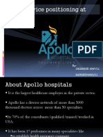 productivity. To reinforce the unique positioning in relation to a hospital, the interior design of the hospital ensures a warm, soothing and non-hospital like ambience. It meant a rigorous selection procedure for employees is of utmost importance (including psychometric testing), welldeveloped training programs and continuous quality audits. Emphasizing on relevance of services being offered across different segments, it was decided that the volumes, not margins, would drive profitability. Though the facility would offer significantly superior services, it would follow a value-for-money pricing strategy, with specifics getting guided by the local market conditions. Since majority of the corporate hospitals including Apollo suffer from them being perceived as elite and 5-star facilities, it was understood that aggressive communication is vital to correct the perception.