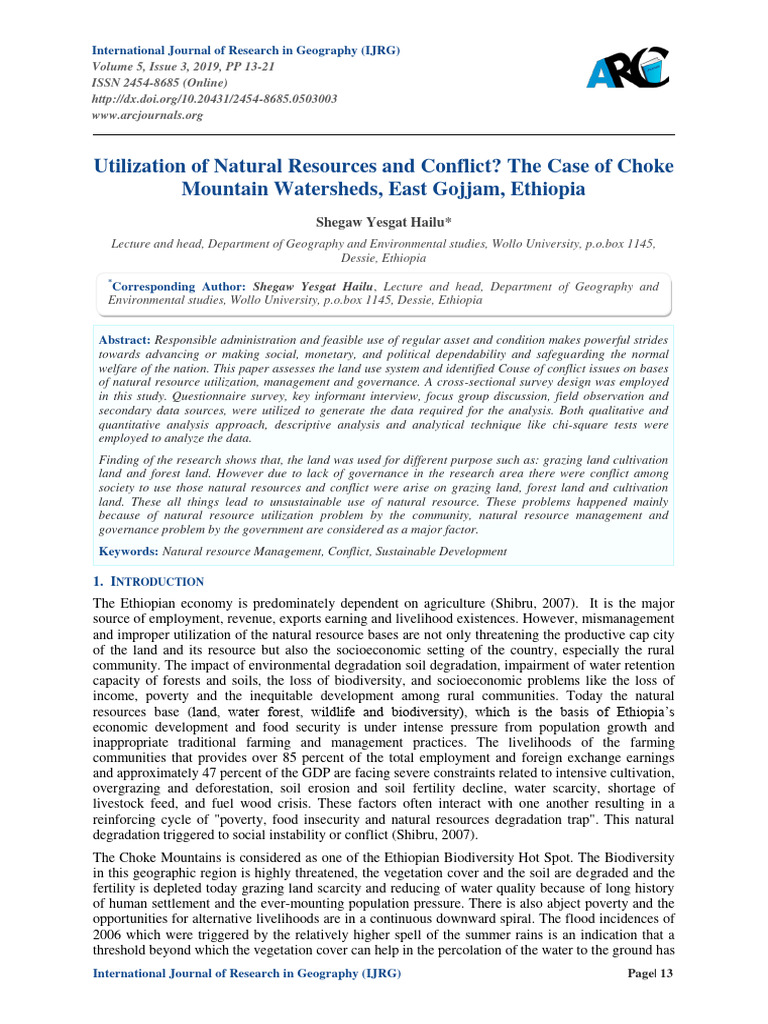 Citation: Shegaw Yesgat Hailu. “Utilization of Natural Resources and Conflict? The Case of Choke