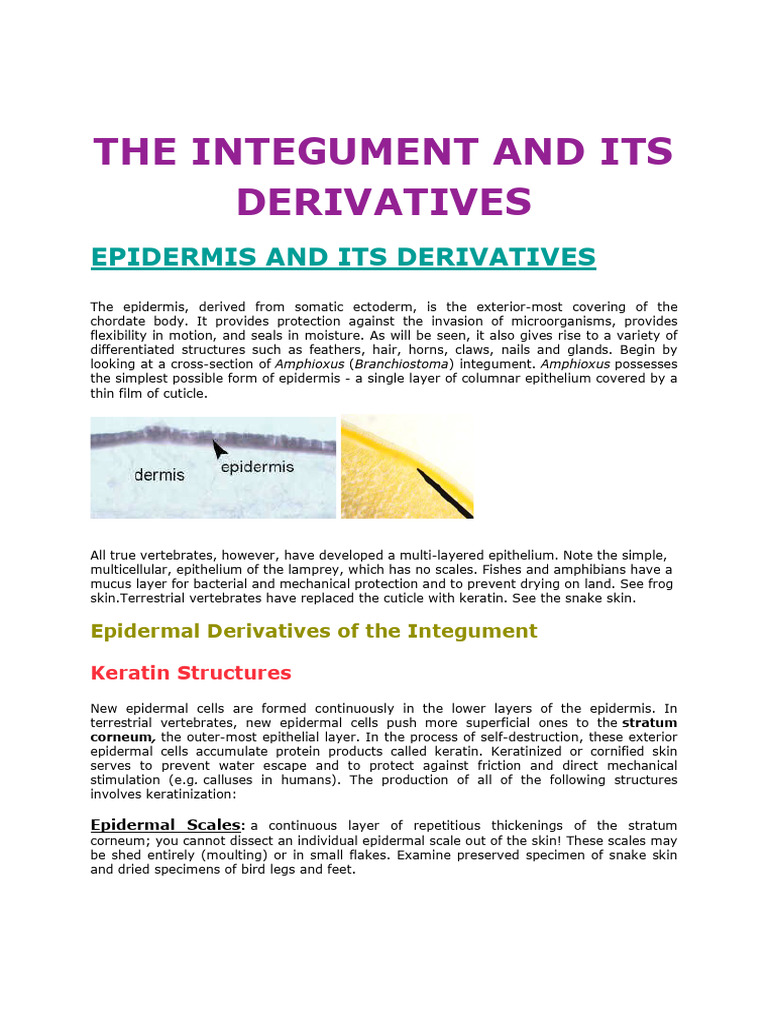 differentiated structures such as feathers, hair, horns, claws, nails and glands. Begin by