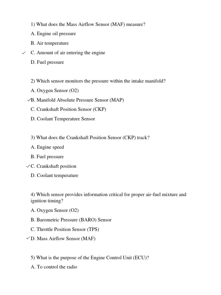 1) What does the Mass Airflow Sensor (MAF) measure?