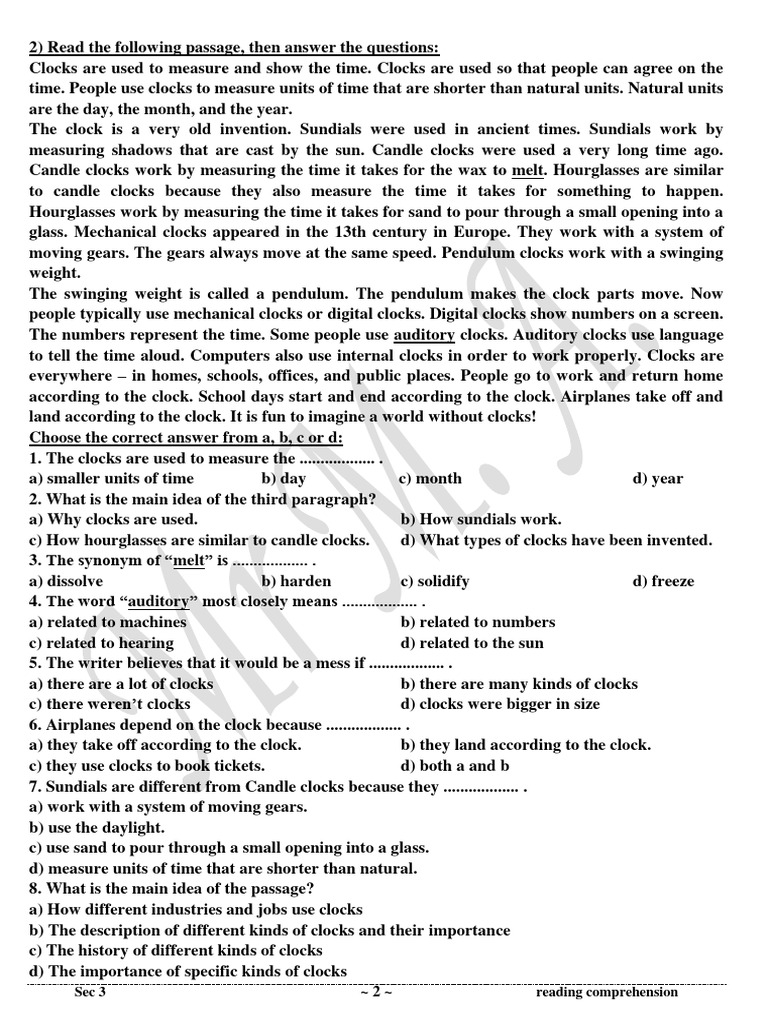 2) Read the following passage, then answer the questions: