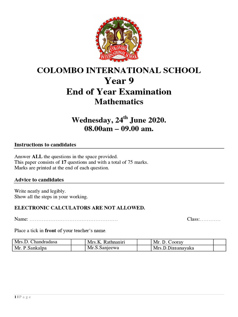 ELECTRONIC CALCULATORS ARE NOT ALLOWED.