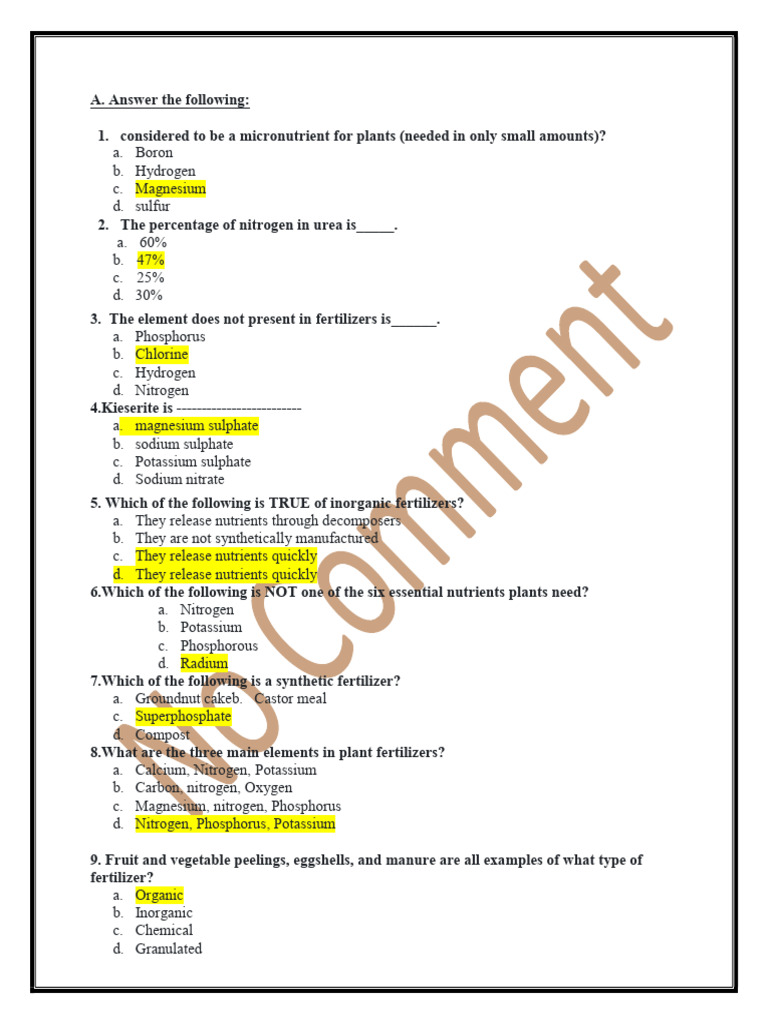 10. What is the fertilizer that is usually concentrated and is to be mixed with water?